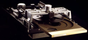 ディスクの上部に頑丈なブリッジがあり、そこに付いている亜鉛ダイキャストのターンテーブルでディスクを固定し回転の安定性、信号の読み取り精度を向上させている。